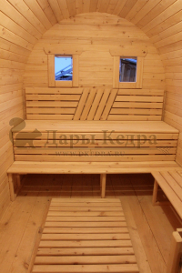 Нравится именно эта модель бани-буханки, просторная и парит хорошо! Мы заказывали с изменением цвета, смотрится достойно. Спасибо за консультацию специалистов компании Дары Кедра и за качественное изделие!