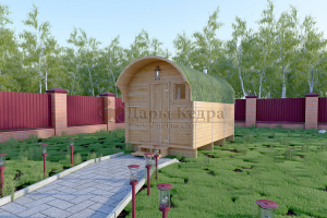 Баня-бочка буханка из кедра с козырьком (все размеры)
