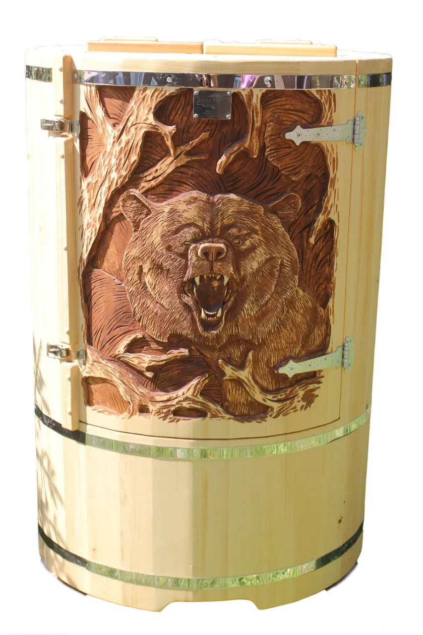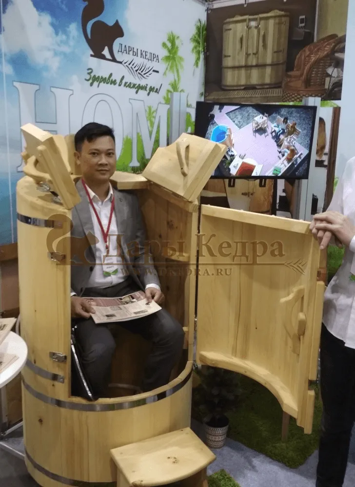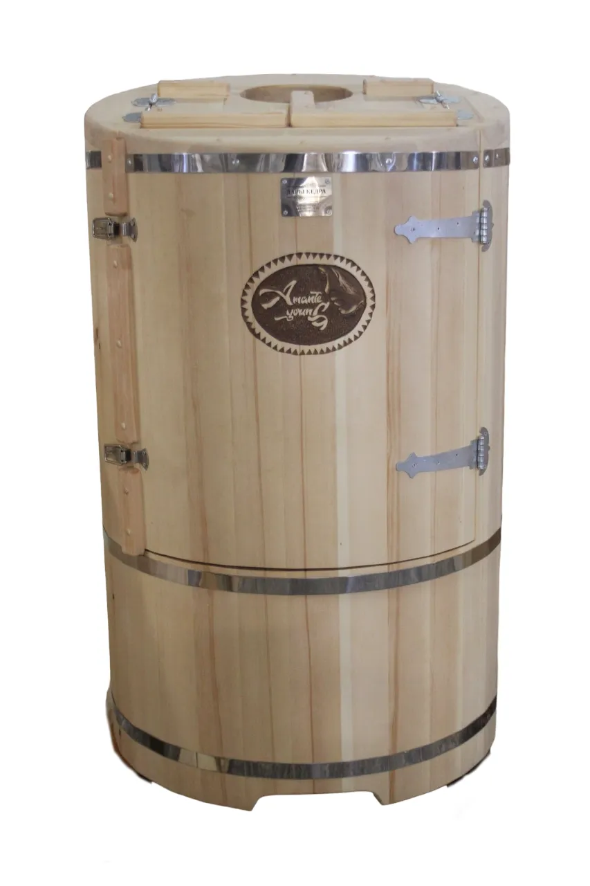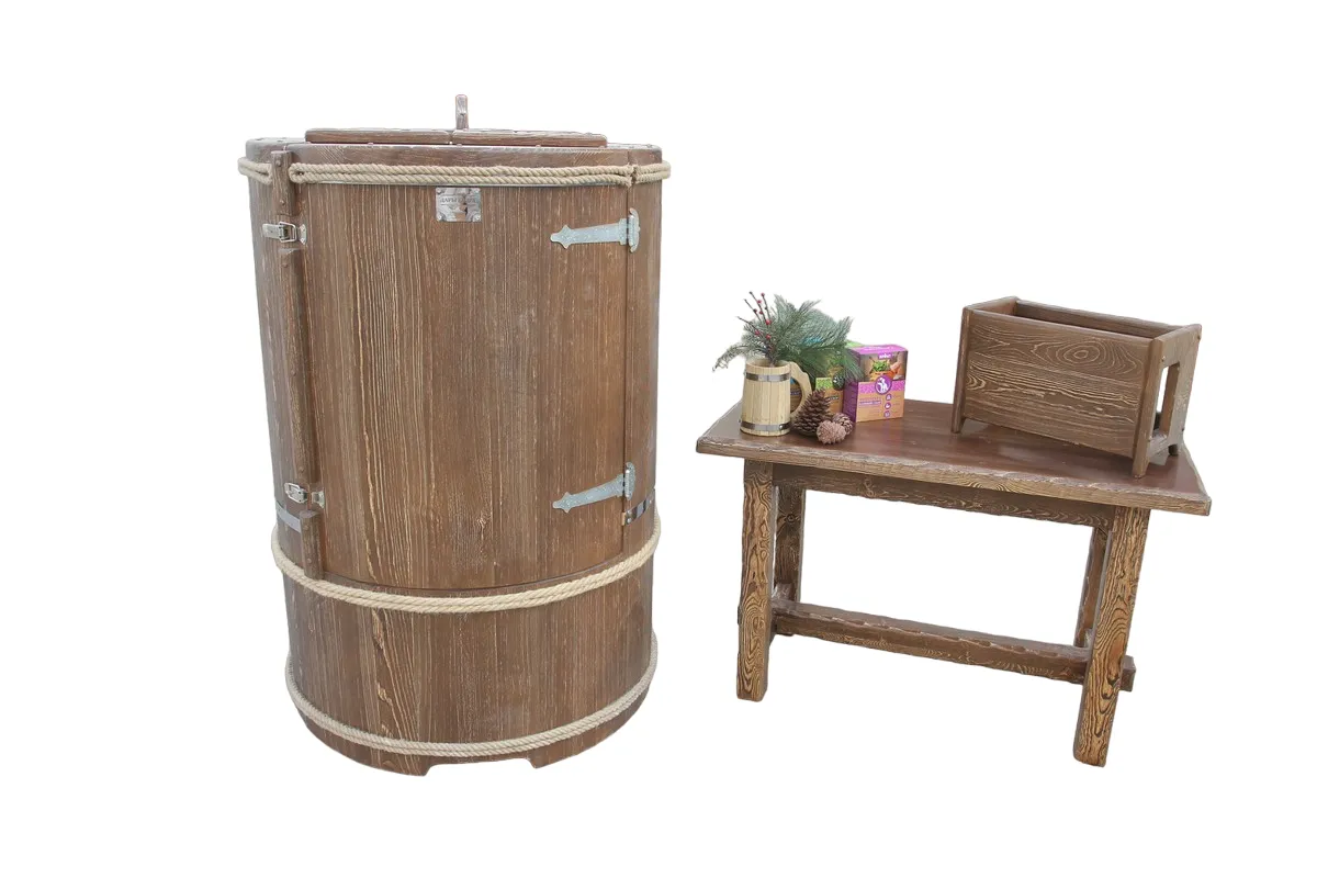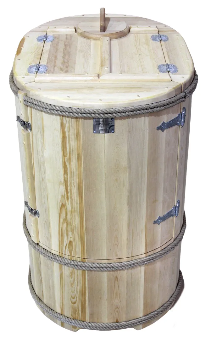 Готовый комплект - это полностью укомплектованный набор с фитобочкой для процедур парения. Круглая модель наиболее компактна и мобильна. Толщина стенок составляет 25 мм. Фитобочка оборудована откидными створками, дверцей и отверстием для головы. Во время парения человек сидит внутри кедровой бочки, а голова находится снаружи. Благодаря этому исключается возможность перегрева. Подлокотники из кедра, встроенные ручки на створках и двери делают эксплуатацию более удобной.