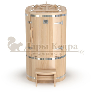 Готовый комплект - это полностью укомплектованный набор с фитобочкой для процедур парения. Овальная модель более просторна и удобна в использовании. Толщина стенок составляет 25 мм. Бочка оборудована откидными створками, дверцей и отверстием для головы. Верхний скос изделия делает положение головы более комфортным и улучшает обзор. Во время парения человек сидит внутри кедровой бочки, а голова находится снаружи. Благодаря этому исключается возможность перегрева. Подлокотники из кедра, встроенные ручки на створках и двери делают эксплуатацию более удобной.