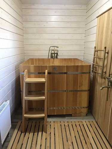 Вот такая купель стоит в семейном отеле. За счет пластиковой вставки легко мыть после большого потока клиентов. Пользуемся давно, поэтому на качество проверили!