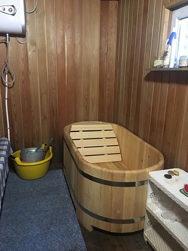 Ванной пользуемся в бане, удобно очень, уже год прошел, выглядит, как новая! Спасибо дарам кедра!